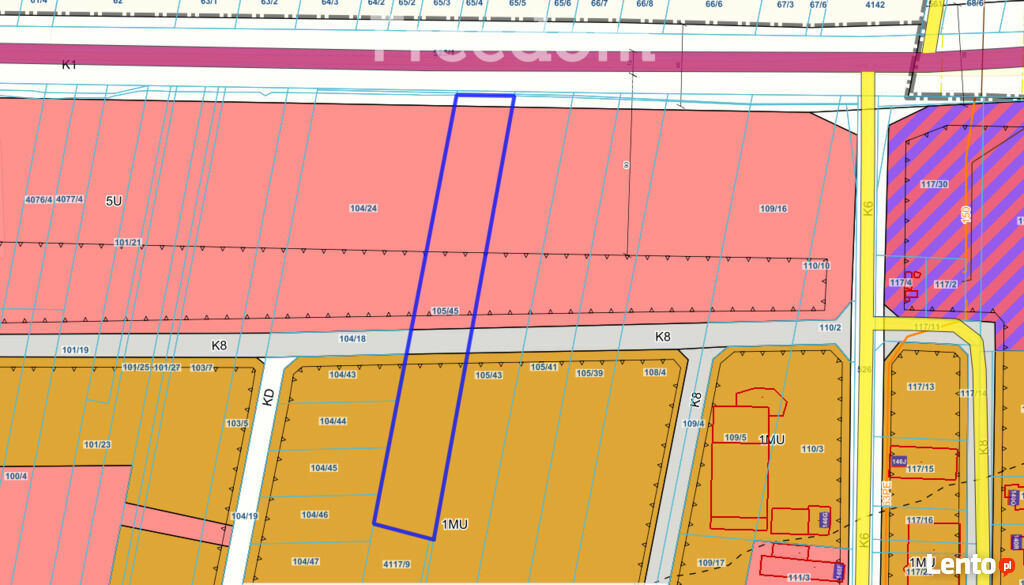 Oferujmy do zakupu działkę w części z terenem oznaczonym symbolem1 MU działką mieszkaniowo-usługowo- produkcyjną i 5U działką